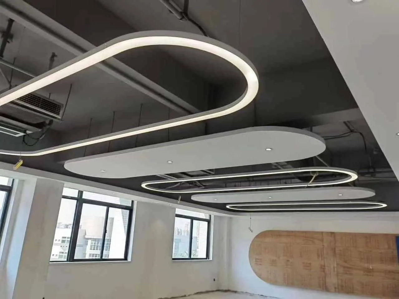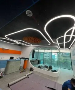 Hình ảnh đèn led treo thả trần được thi công bằng thanh nhôm uốn cong đèn led
